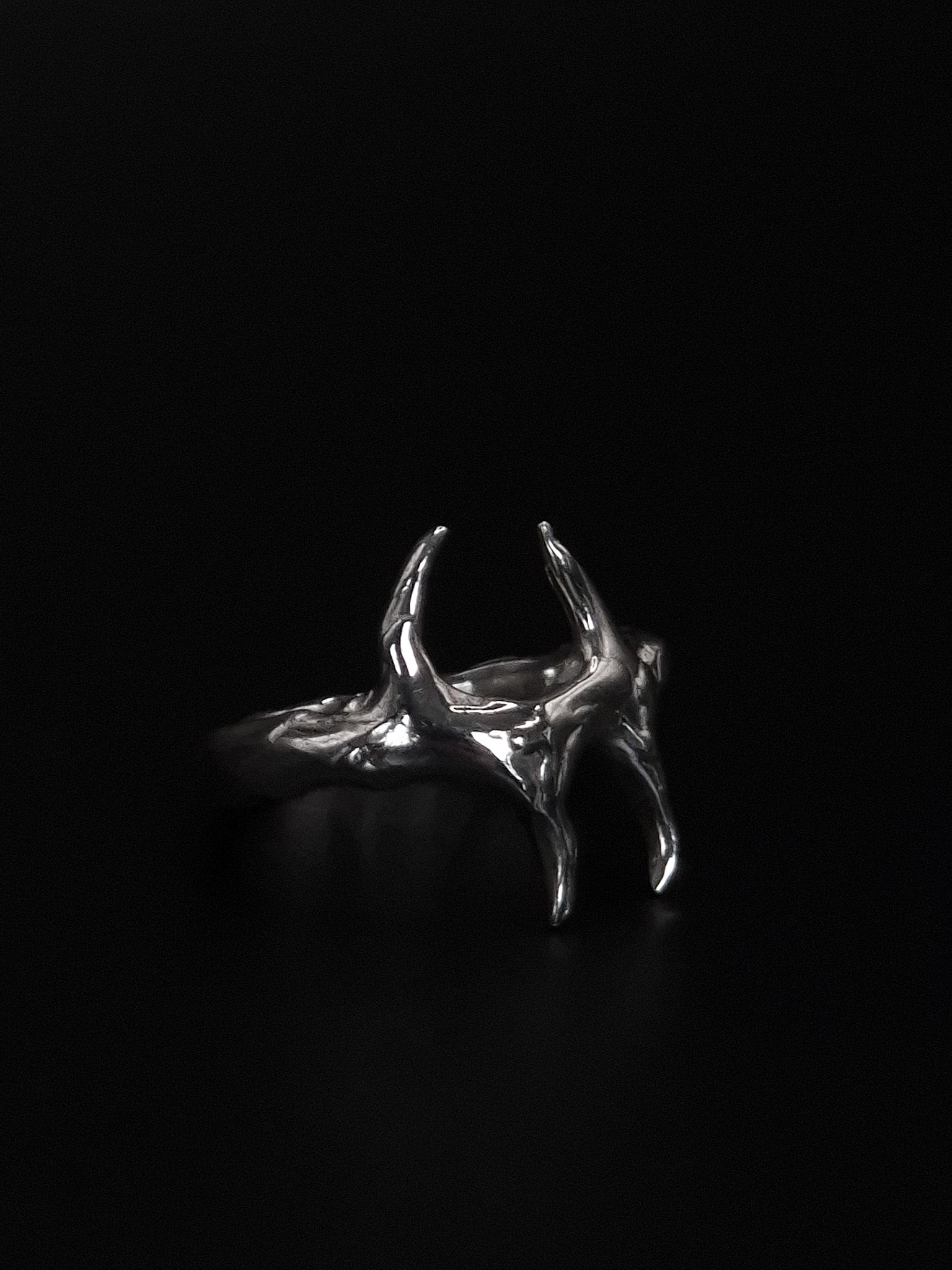 Quatre pointes tendues vers le ciel, comme des crocs lunaires ou des cornes sacrées. Crocs de Lune évoque un rituel ancien, une énergie primitive cristallisée.