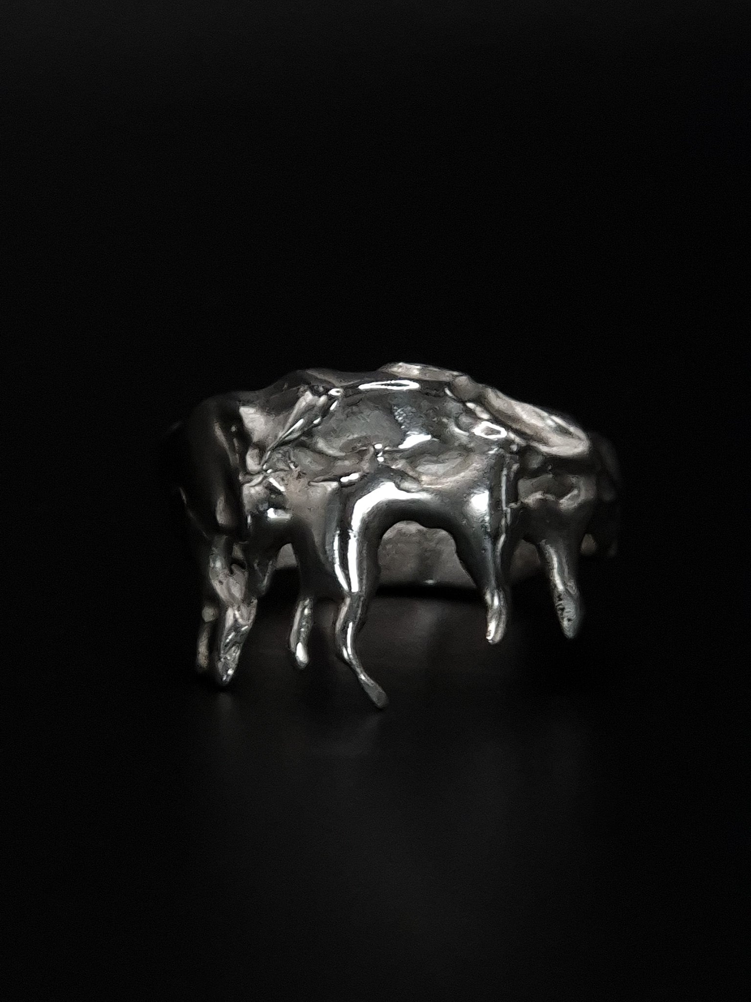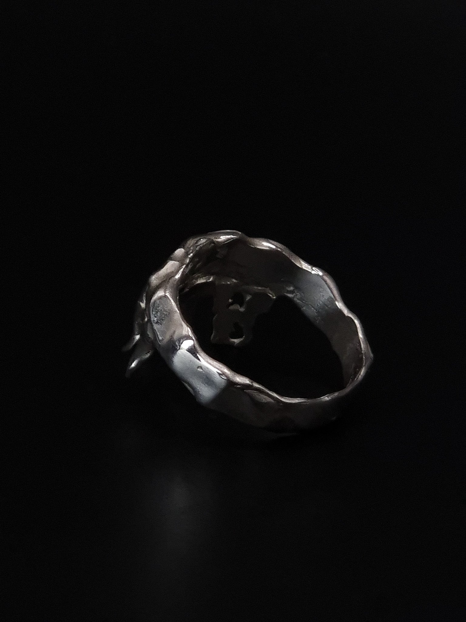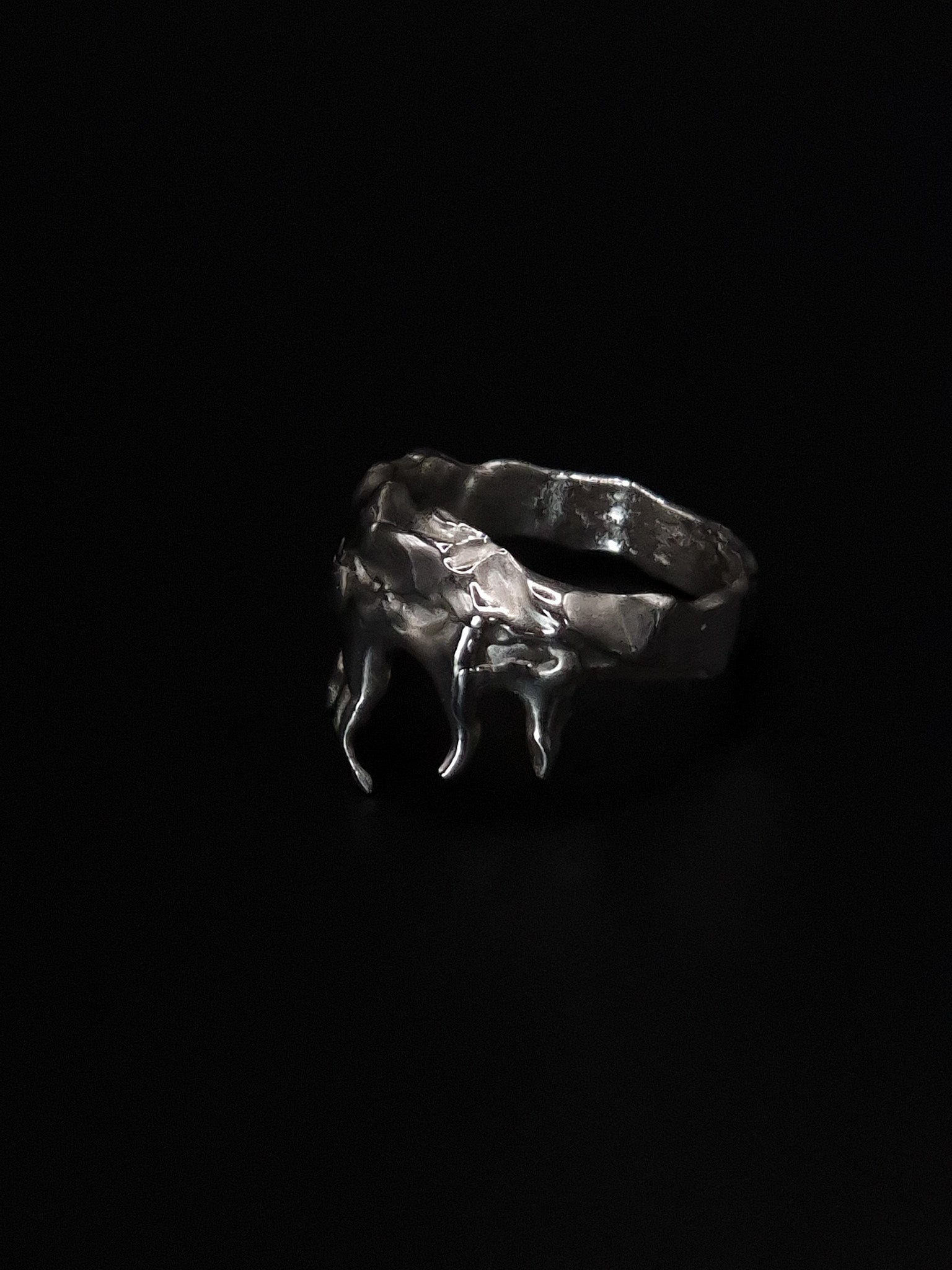Des pics acérés surgissent d’une base tourmentée, comme un feu figé en plein élan. Flambe incarne la puissance brute, l’intensité sculptée dans le métal.