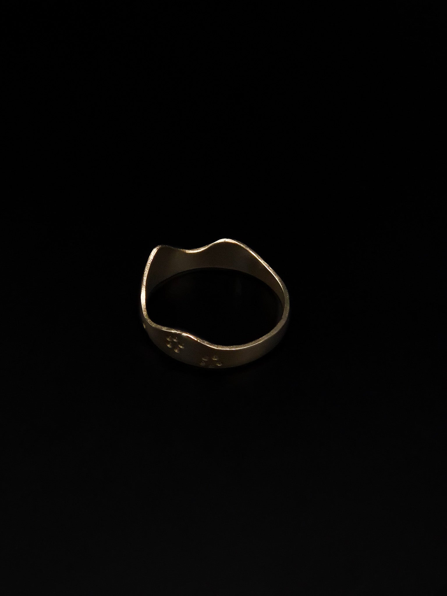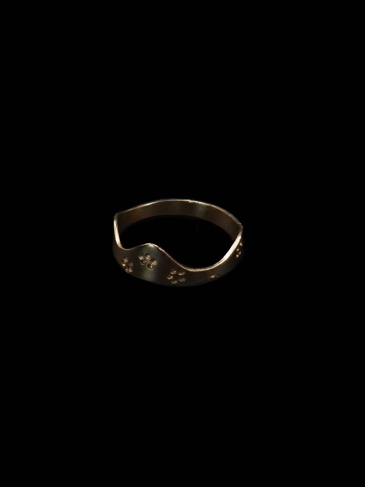 Fine et ondulée comme une caresse de clair de lune, Lune Douce trace une vague légère autour du doigt. Quelques éclats gravés, comme des étoiles discrètes, viennent y murmurer un ciel paisible.