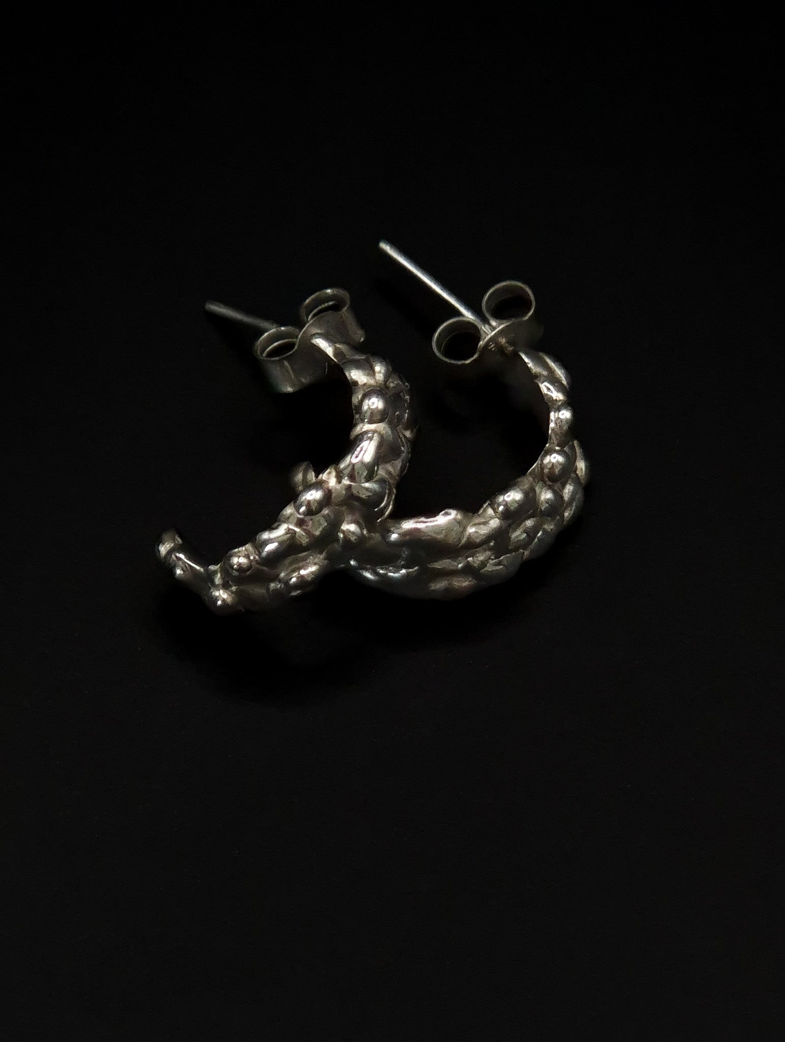Deux croissants en fusion, comme germés d’une terre brûlante. Graine ardente incarne l’élan vital, le feu intérieur qui éclot dans la matière.